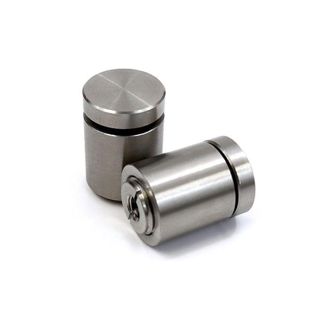 Our range of sign standoffs includes multiple diameters, sizes, and finishes, such as clear anodized, black anodized, satin chrome, polished chrome, brushed nickel, and stainless steel. Standoffs are available in 12mm (1/8″), 16mm (5/8″), 20mm (3/4″), 25mm (1″), 32mm (1-1/4″), and 38mm (1-1/2″) diameters. To explore our entire selection of sign standoffs and panel fittings, crafted exclusively from premium-grade aluminum, brass, or stainless steel, click on the link below.