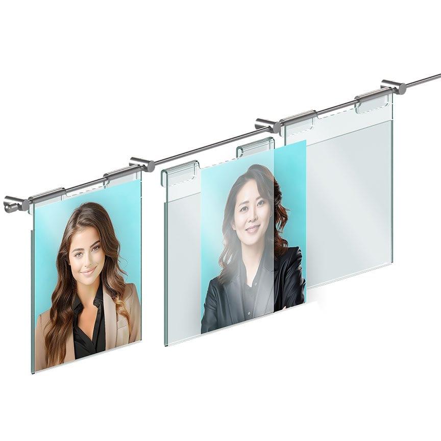 FINISHES: Mounting Hardware is supplied in a satin chrome finish. Acrylic holders and frames are made of high-quality 1/8″ thick clear or non-glare acrylic.