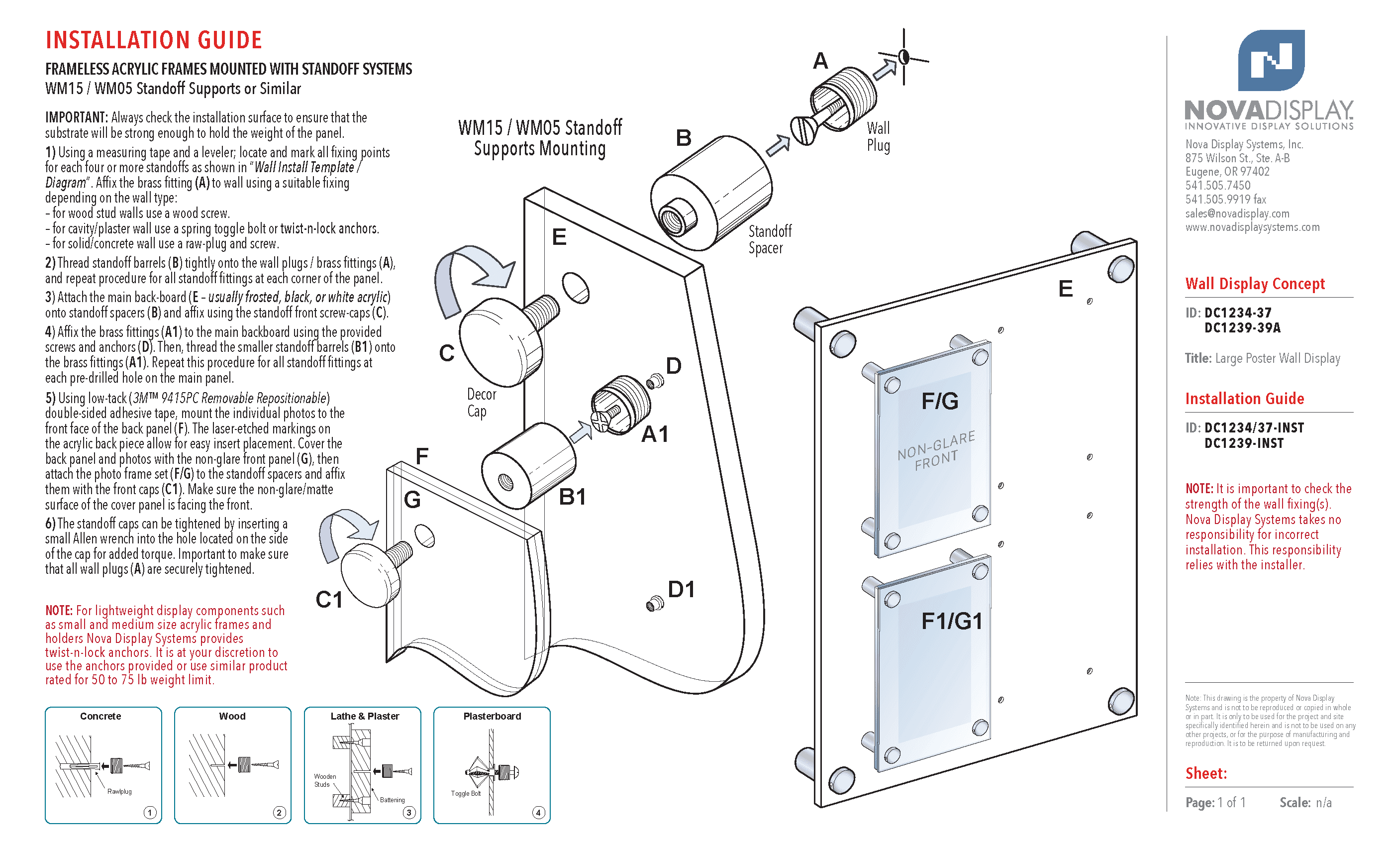 Projection Type: Frame supports are available in a few options — ½” or 1” standoffs for outward projection, or screw caps only for a flush mount (*WM05-13 / WM05 / P24/S). -