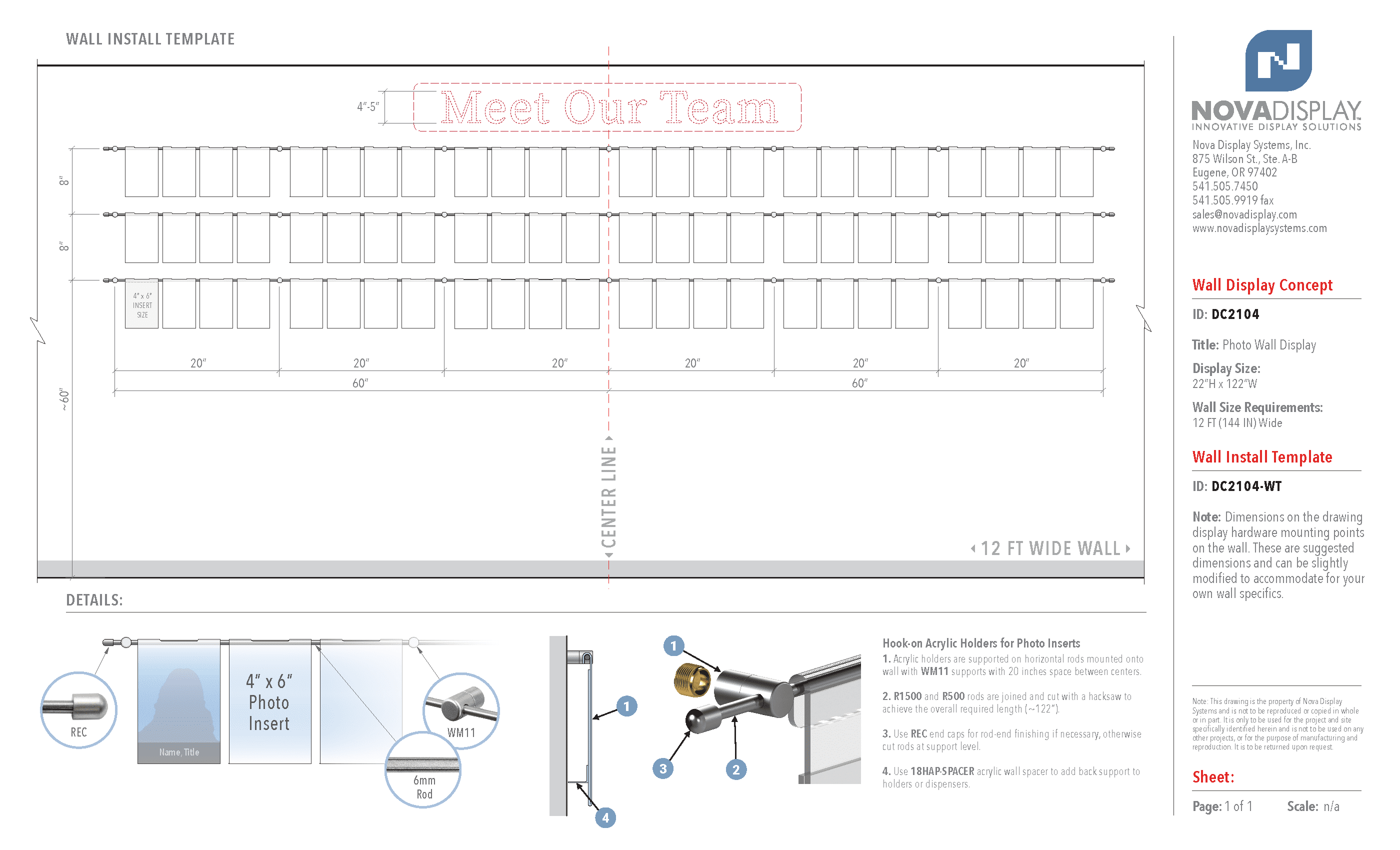 DC2104 Photo Wall Display with Hook-on Acrylic Holders for 4×6 Inserts (12FT WALL)