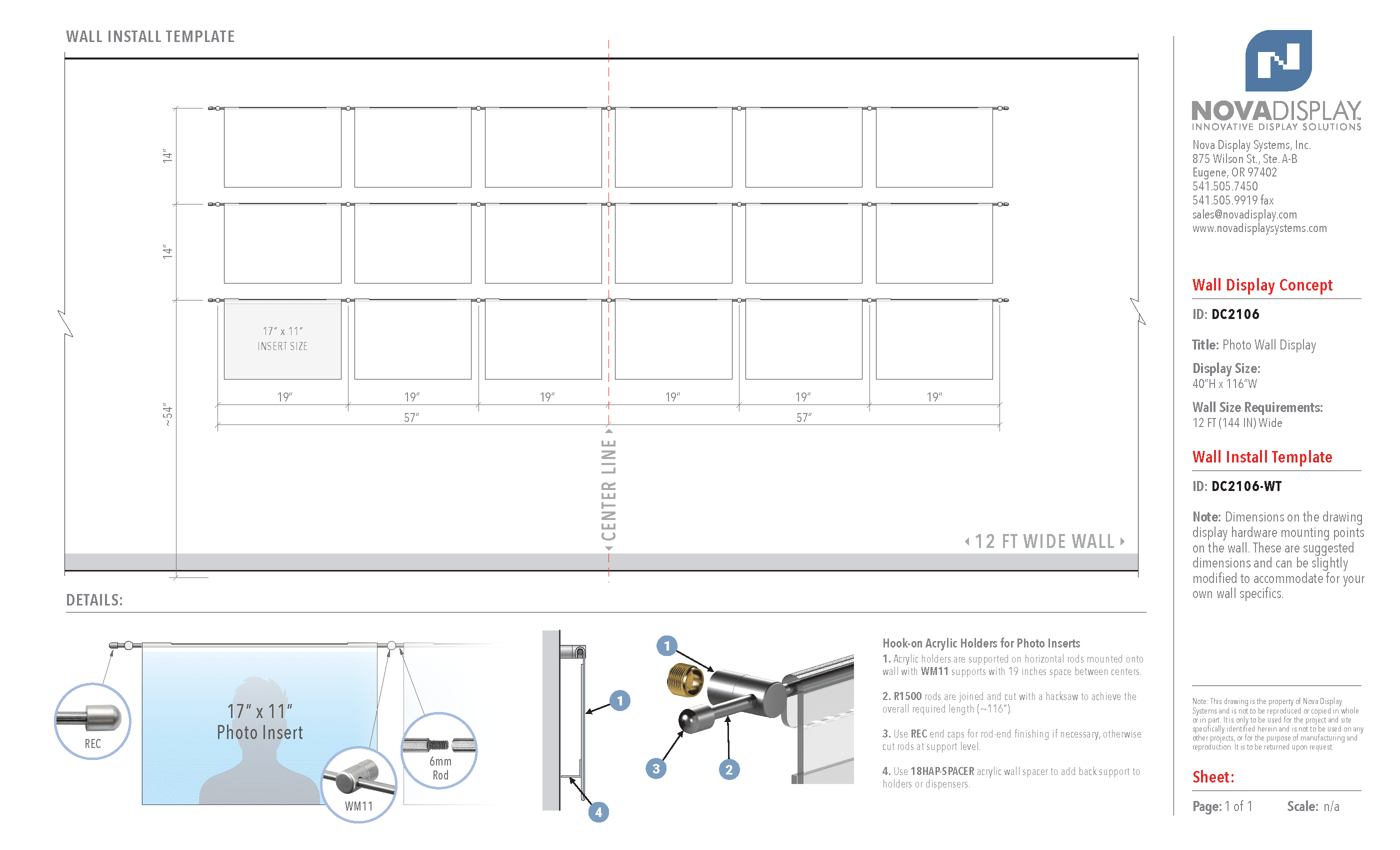 DC2106 Photo Wall Display with Hook-on Acrylic Holders for 17×11 Inserts
