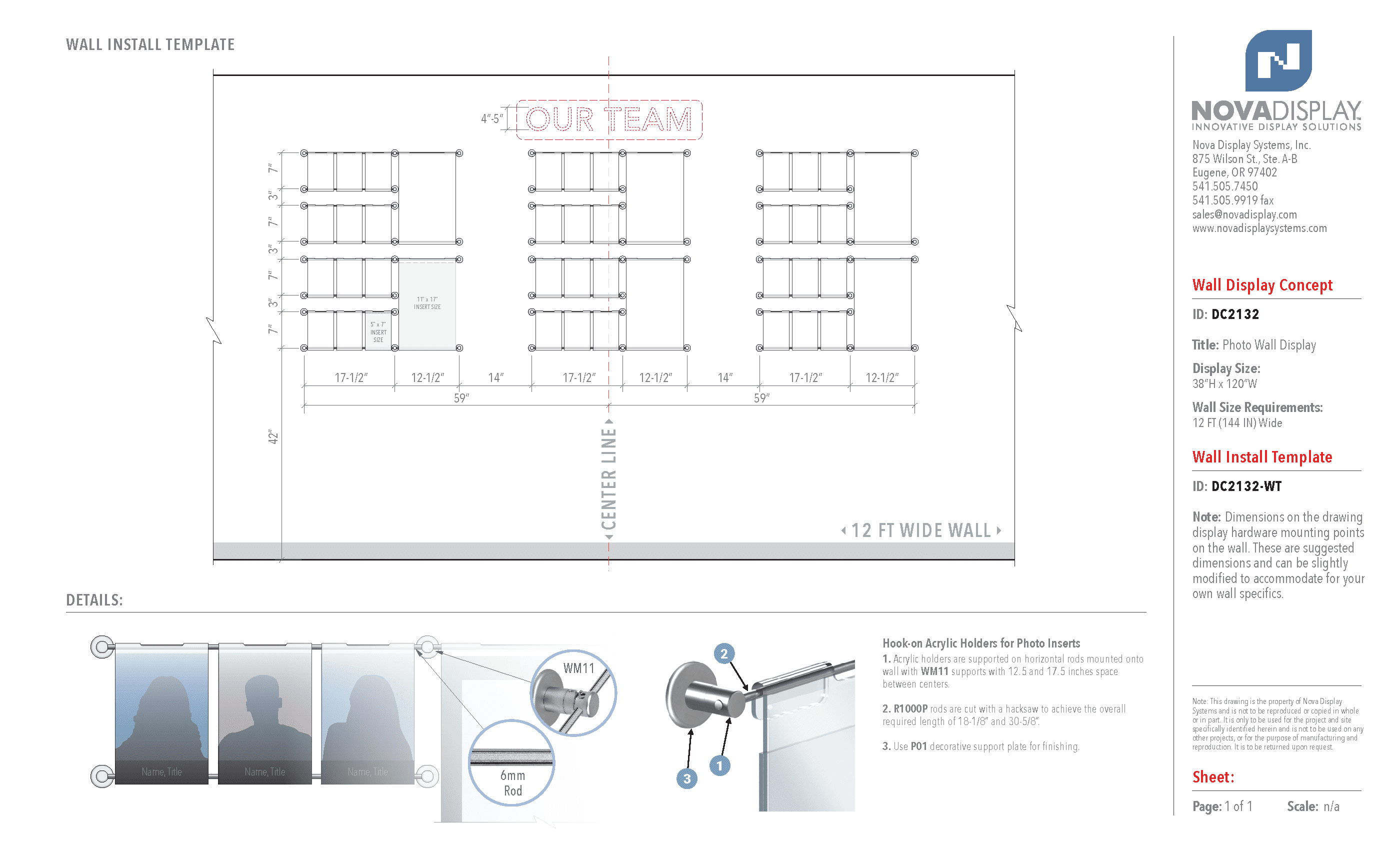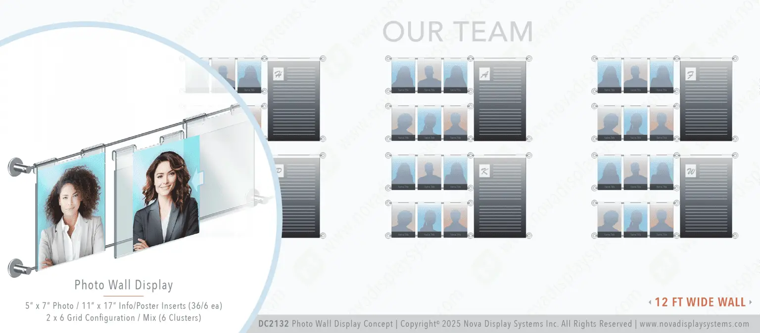 DC2132 Photo Wall Display with Acrylic Holders for 5×7 and 11×17 Inserts (12FT WALL)