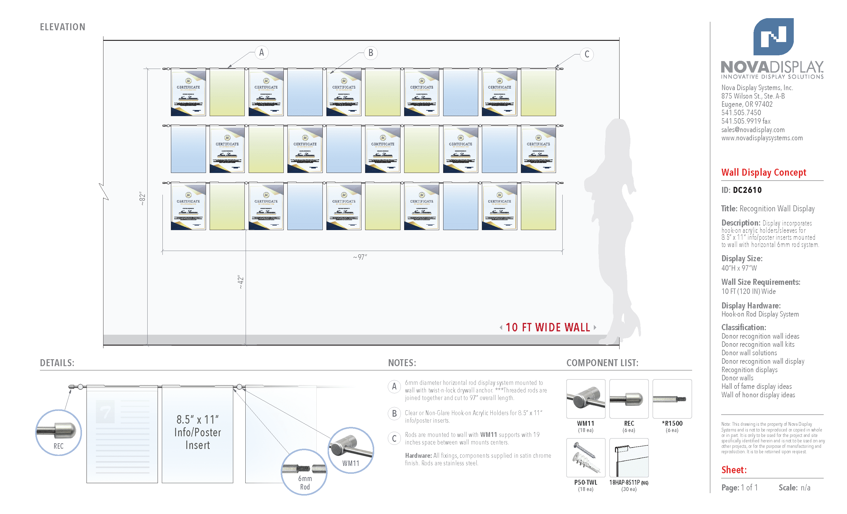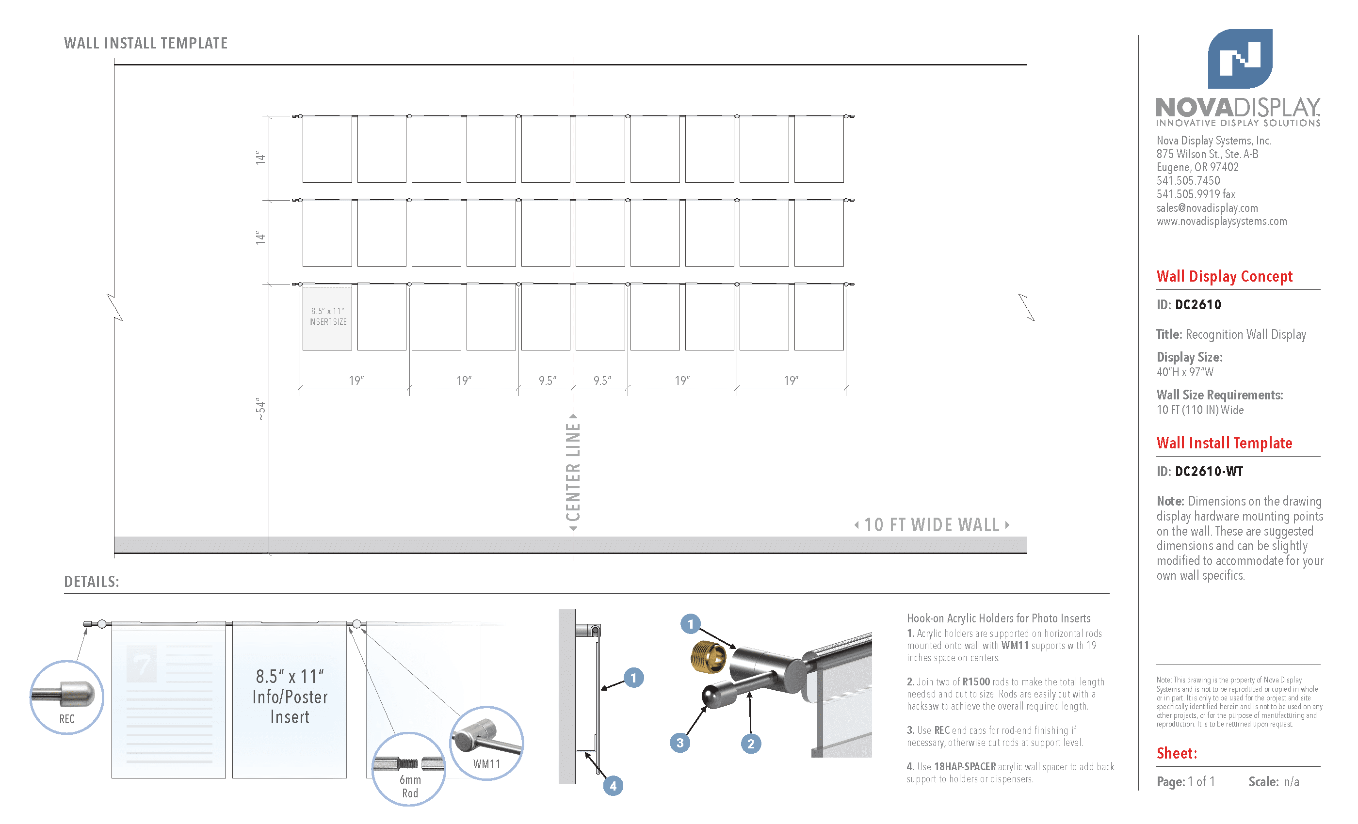 DC2610 Recognition Wall Display with Hook-on Acrylic Holders for 8.5×11 Inserts (10FT WALL)