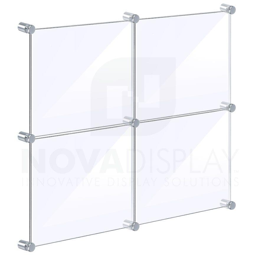 Acrylic Collage Info/Poster Frame Display with Graphic Butted Panels / Wall mounted with standoffs and 4-way hubs / corner connectors