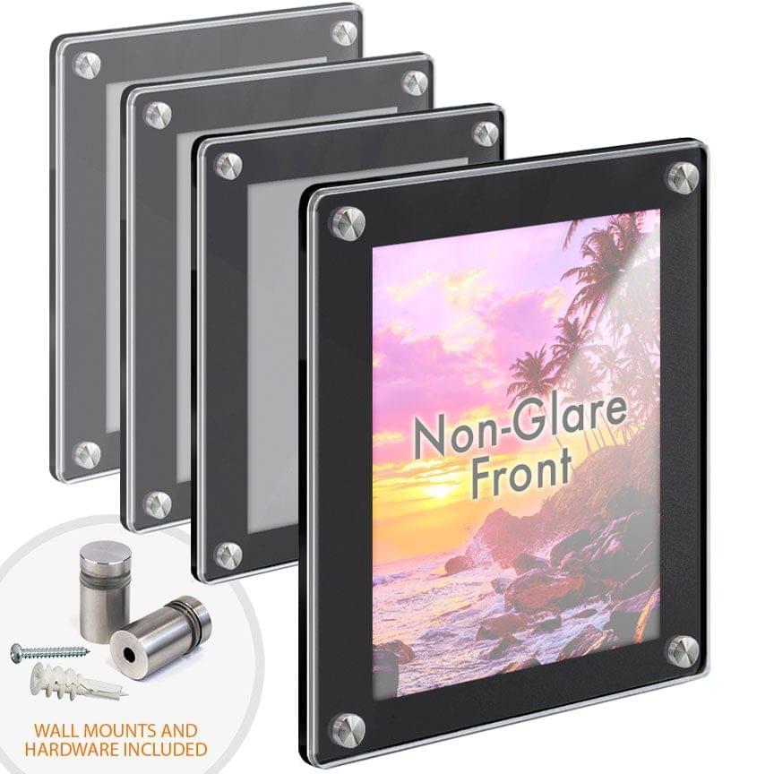 Deluxe Non-Glare Acrylic Poster Frames with Standoffs – Insert Sizes: 4″ x 6″ – 8″ x 10″ / QTY 4