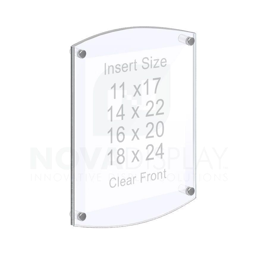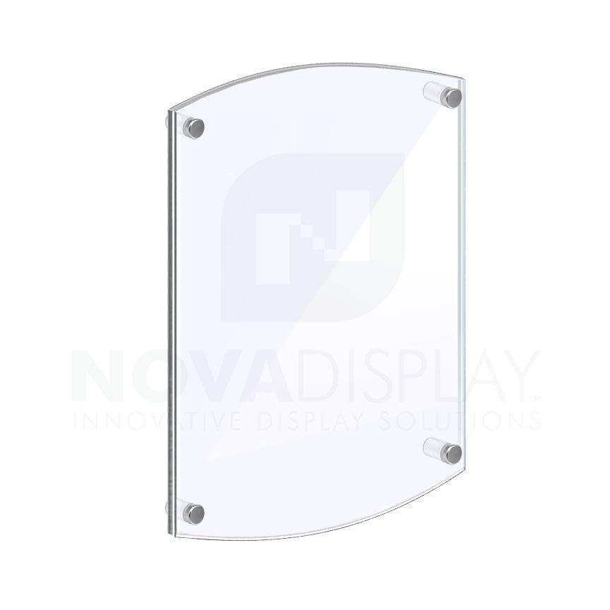 Frameless Acrylic Poster Frames with Standoffs in Arched Top/Bottom Style – set of 1/8″ Clear Acrylic Panels with Laser-Cut Polished Edges.