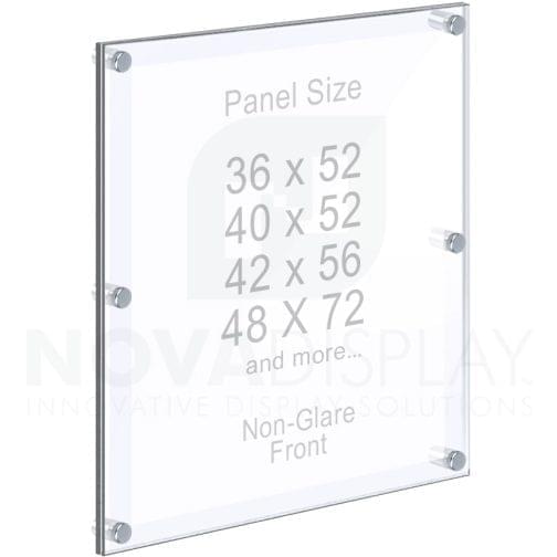 Oversized Frameless Acrylic Poster Frames with Standoffs – set of 1/4″ Clear and 1/8″ Non-Glare Acrylic Panels with Laser-Cut Polished Edges