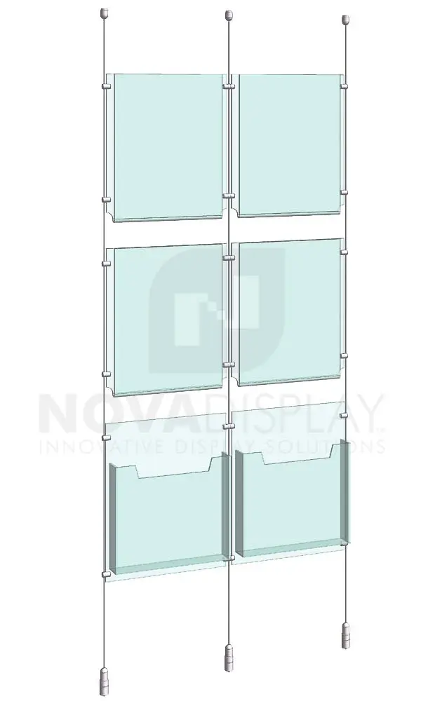 Cable Suspended Acrylic Literature Display Kit (Literature Dispenser) with Poster Holders