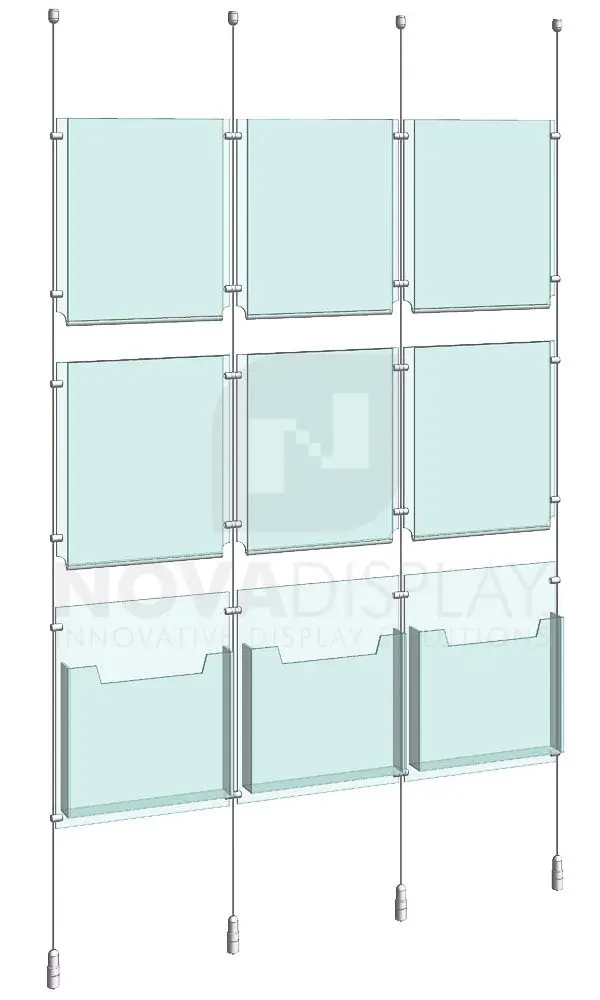 Cable Suspended Acrylic Literature Display Kit (Literature Dispenser) with Poster Holders