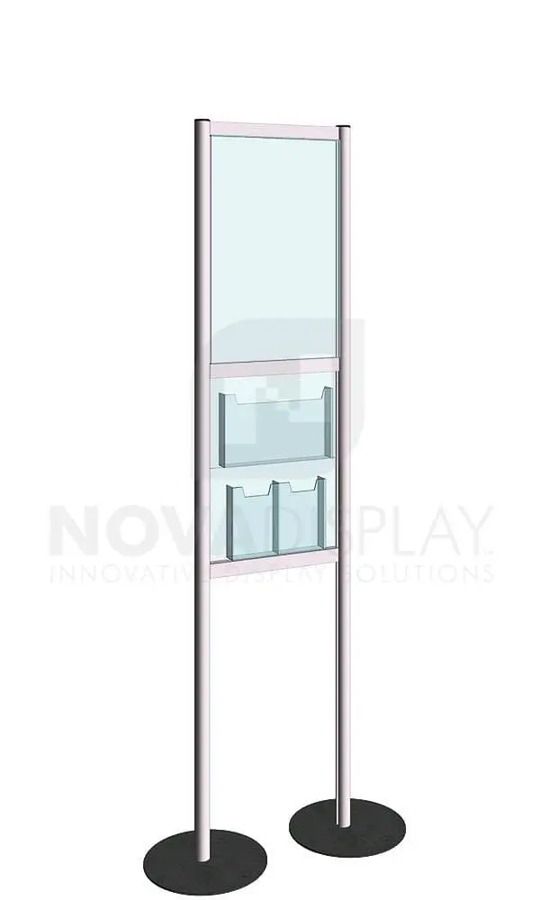 Stack-on Display Stand / ST Series with one set of non-glare acrylic sandwich panels to hold 14″W x 22″H format poster inserts, one or two acrylic leaflet dispensers for letter and a tri-fold brochure inserts.