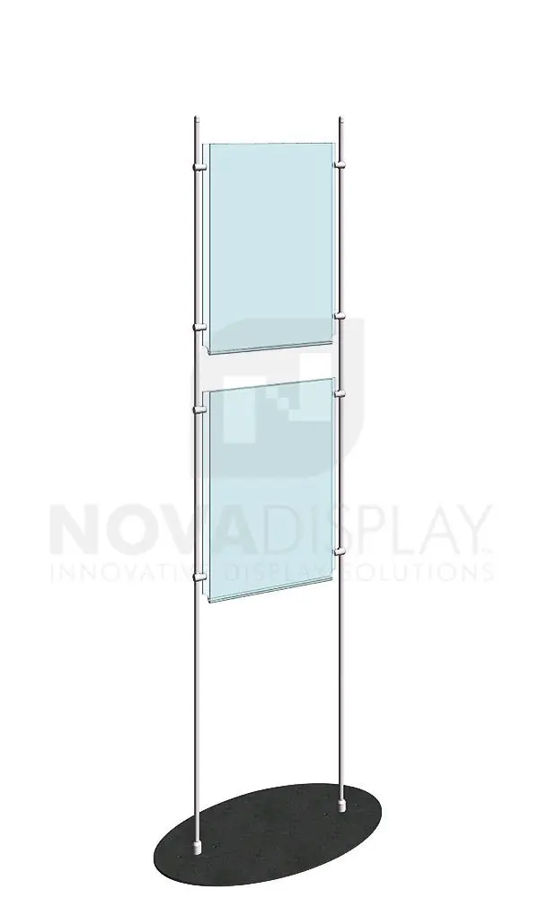Totem Display Stand / RS Series comes with rods, support fittings, oval base and two 11″x17″ poster holders / portrait format.