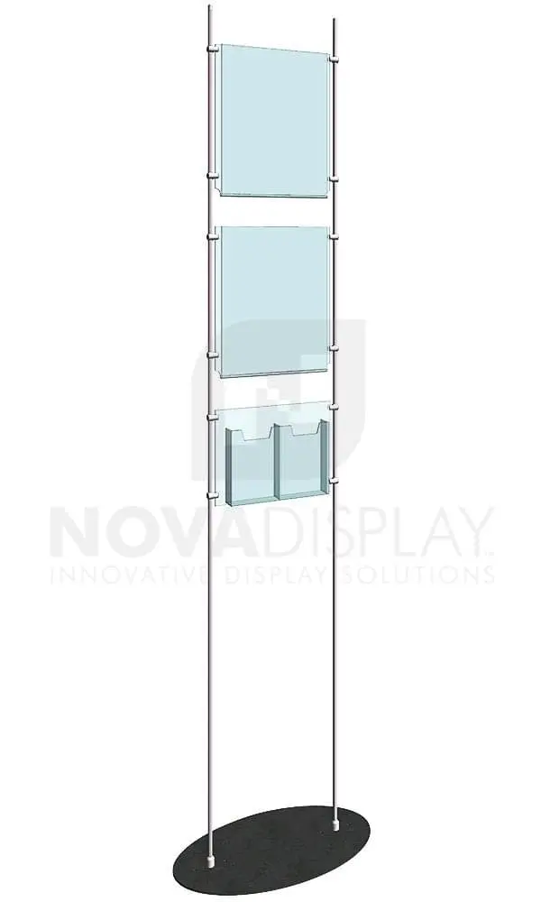 Totem Display Stand / RS Series comes with rods, support fittings, oval base, two 11″x14″ poster holders / portrait format, and an acrylic and an acrylic dual tri-fold dispenser available in Single or Double Sided configurations.