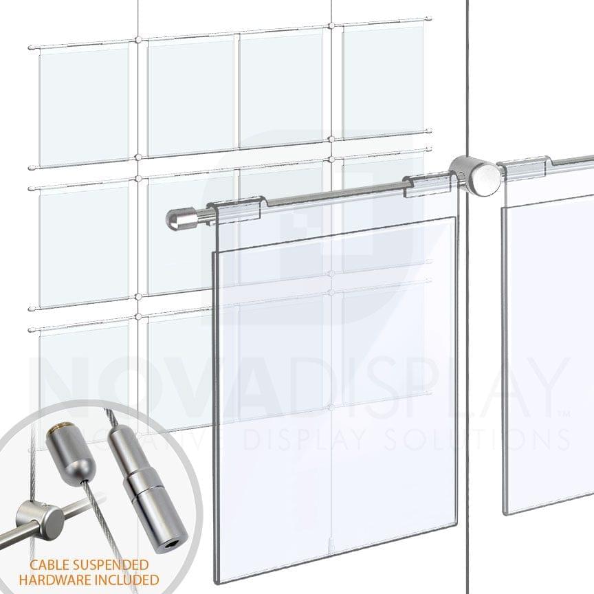 Cable Suspended Hook-on Acrylic Info/Poster Display – Clear. Insert Size: 8.5″W x 11″H / 3 x 4 GRID