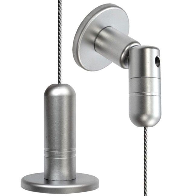 The C140-4M cable suspension/wire hanging kit includes a factory top-crimped cable, an adjustable angled-top ceiling fixing, and a bottom/floor adjustable tensioner fixing. Adjustable angle fixing comes with ball-joint swivel coupling and 38mm (1-1/2″) diameter base support that can be adjusted to any angle. Use with applications that require mounting the cable at an angle such as suspending from sloped cathedral or vaulted ceilings. The kit comes with cables available in 4 meters (13′ 1-1/2″), which can be conveniently adjusted or trimmed on-site during installation.