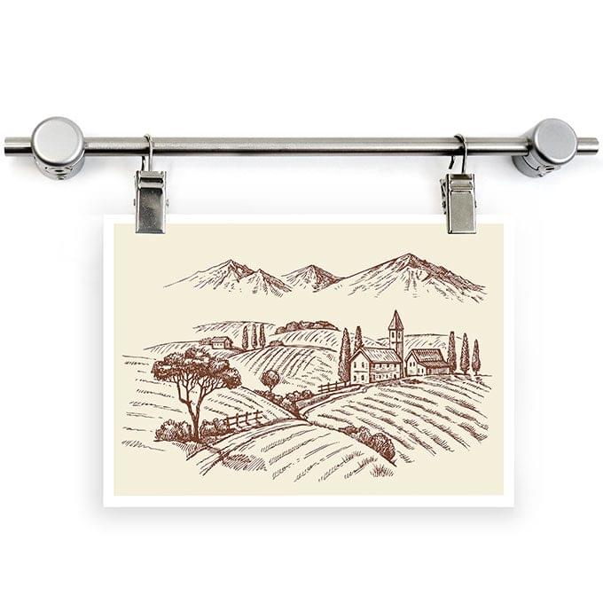 Wall-Mounted Horizontal Rod Display Kits with Clips for Hanging Photos and Information