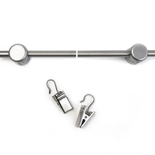 • Each kit includes rod wall supports, wall anchors, decorative end caps, and metal clips with hanging hooks.