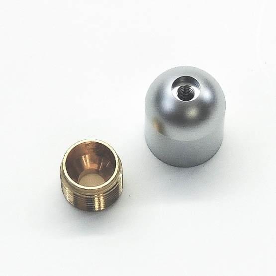 For durability, all rod display fittings are made from a brass alloy, UNS C37710/ASTM B124. Grub screws used for fittings are made of AISI 12L14 Carbon Steel (UNS G12144) and have a plastic tip of Nylon 6-6.