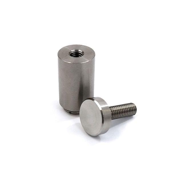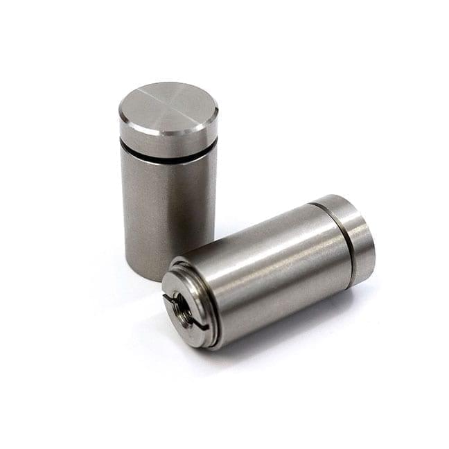 Our range of sign standoffs includes multiple diameters, sizes, and finishes, such as clear anodized, black anodized, satin chrome, polished chrome, brushed nickel, and stainless steel. Standoffs are available in 12mm (1/8″), 16mm (5/8″), 20mm (3/4″), 25mm (1″), 32mm (1-1/4″), and 38mm (1-1/2″) diameters. To explore our entire selection of sign standoffs and panel fittings, crafted exclusively from premium-grade aluminum, brass, or stainless steel, click on the link below.