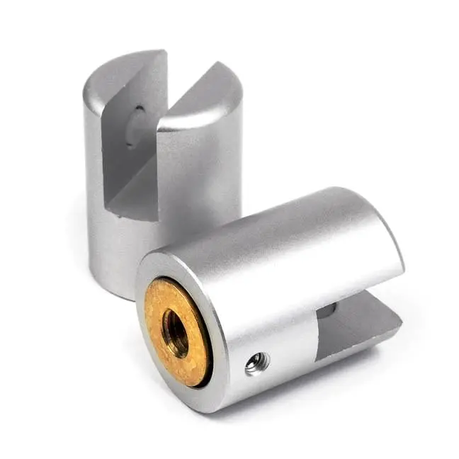 These are solid, durable aluminum standoff supports machined using high-grade aluminum and supplied with a quality satin clear anodized finish. The fittings are modular and can be used with other interchangeable components such as threaded caps to create projecting fork panel supports with screw caps.