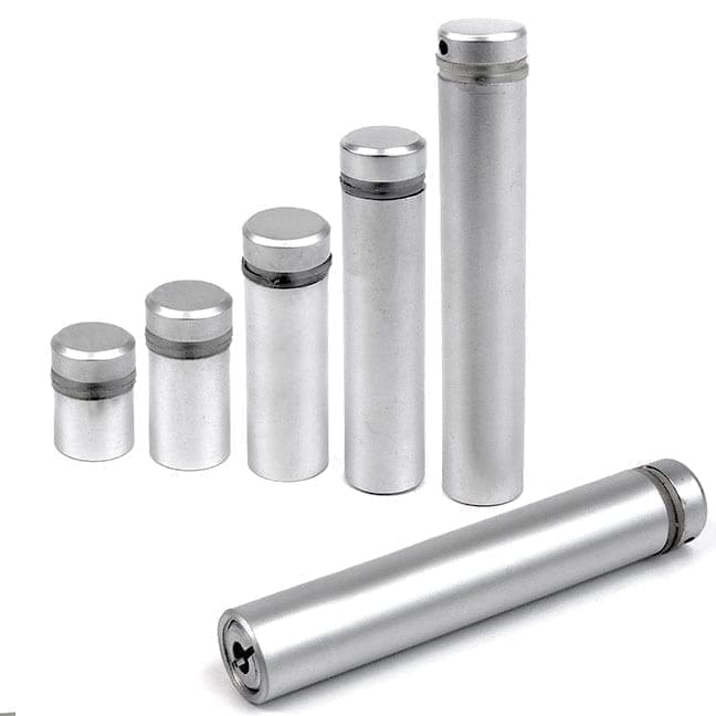 1/2″ Dia. Sign Standoffs (2-Part Standoff with M8 Stud-Cap) / Satin Chrome Finish