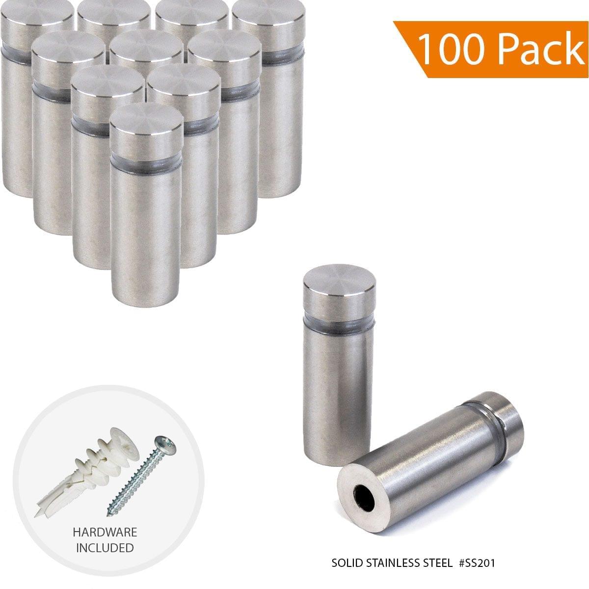 Sign Standoff/Hardware Kit: 1/2″ Dia. x 1″ Sign Standoff with Twist-N-Lock Anchor / Pack of 100 units. Made of Solid Stainless Steel with Satin Brushed Finish.