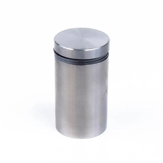 Sign Standoff/Hardware Kit: 1″ Dia. x 1-1/2″ Sign Standoff with Twist-N-Lock Anchor / Pack of 24 units. Made of Solid Stainless Steel with Satin Brushed Finish.