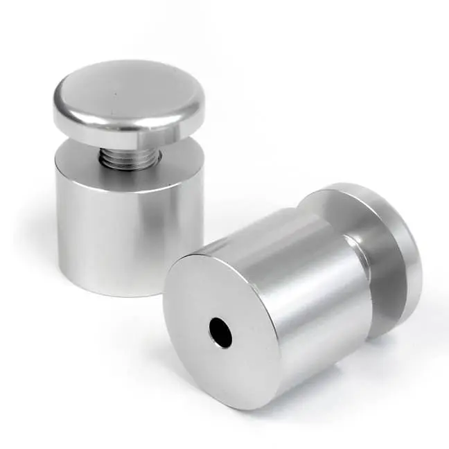 Sign Standoff/Hardware Kit: 1″ Dia. x 3/4″ Sign Standoff with Twist-N-Lock Anchor / Pack of 50 units. Made of Solid Aluminum with Clear Anodized Finish.