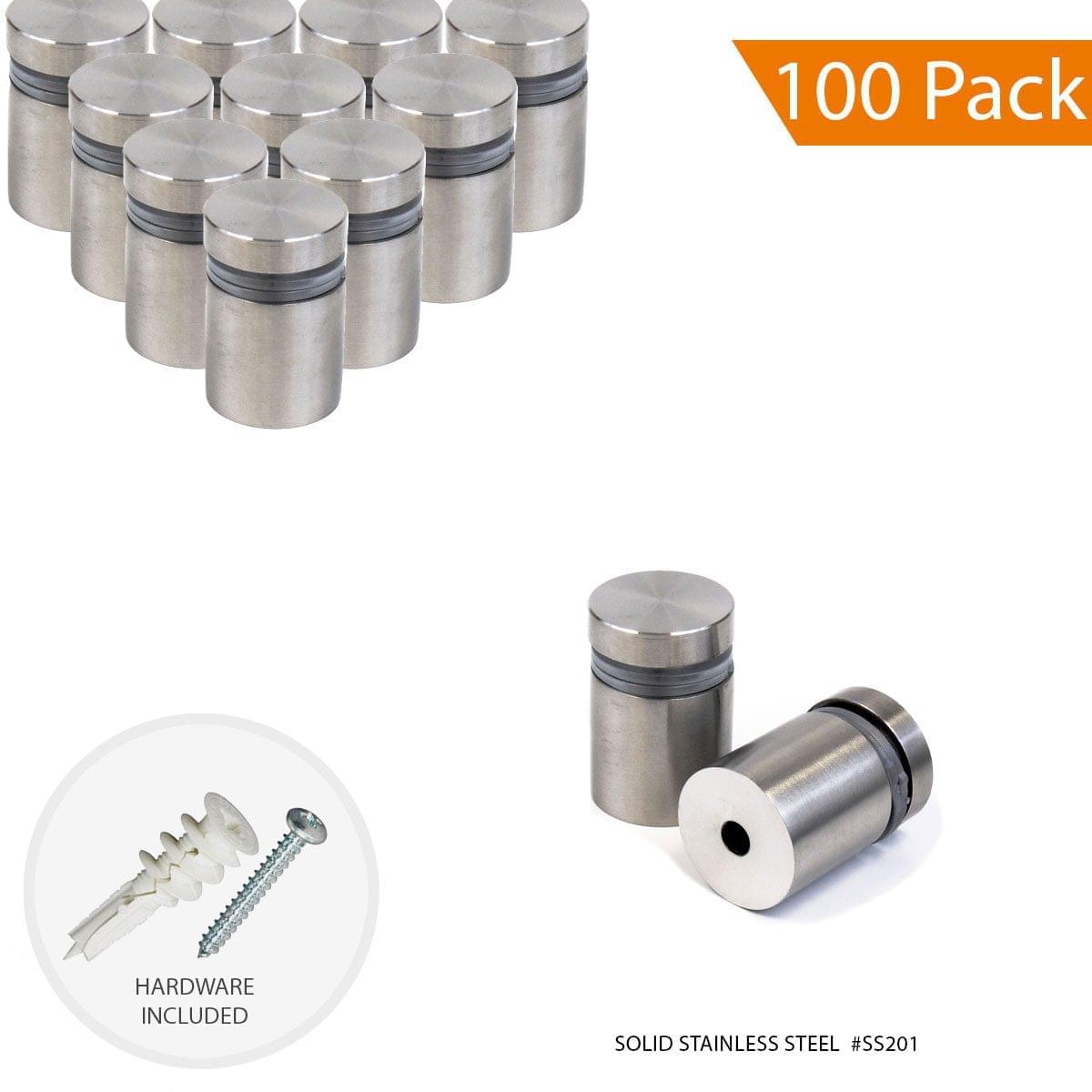 Sign Standoff/Hardware Kit: 3/4″ Dia. x 3/4″ Sign Standoff with Twist-N-Lock Anchor / Pack of 100 units. Made of Solid Stainless Steel with Satin Brushed Finish.