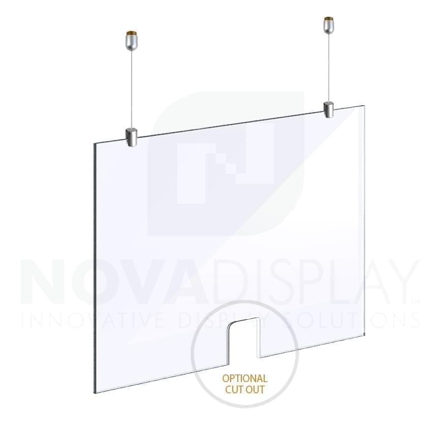 Countertop Acrylic Sneeze Guard – Suspended on Cable Display System