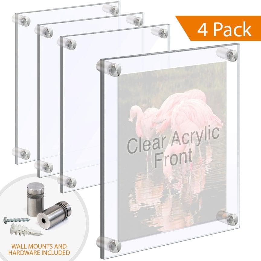 1/2″ Thick Acrylic Block Frames with Standoffs / Wall Mounted. Set of 1/4″ Clear Acrylic Panels with Laser-Cut Polished Edges / 4 pcs
