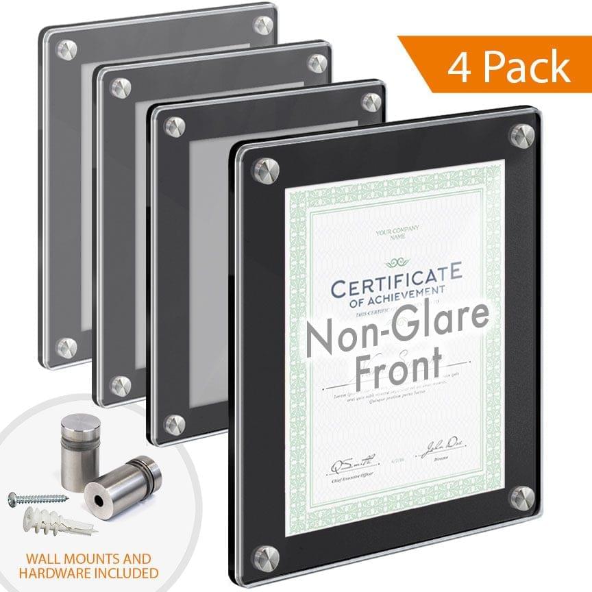Black Acrylic Wall Frames with Standoffs / Round Corners. Set of 1/4″ Matte-Black & 1/8″ Non-Glare Acrylic Panels with Laser-Cut Polished Edges / 4 pcs
