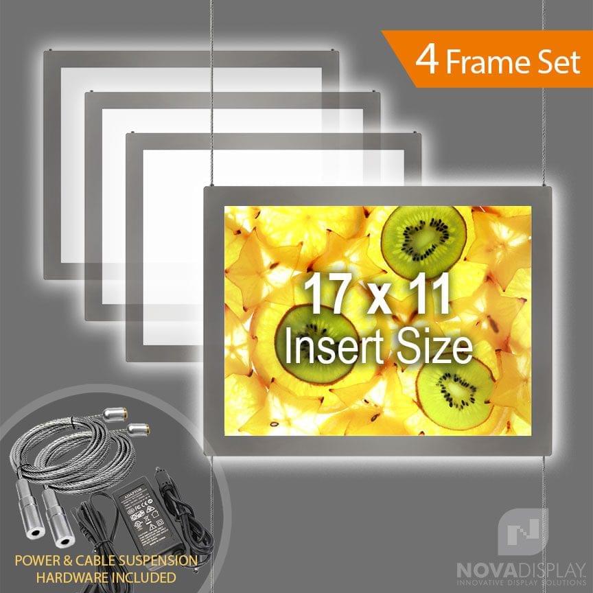 Rimless LED Backlit Display / Cable Suspended. Insert Size: 17″W x 11″H / SET OF 4 FRAMES