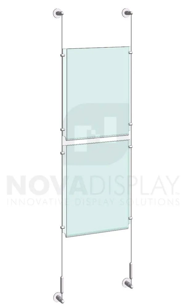 Wall-to-Wall Cable Suspended 1/8″ Non-Glare Acrylic Poster Holder / Portrait Format – Double Pocket / 4 PCS SET