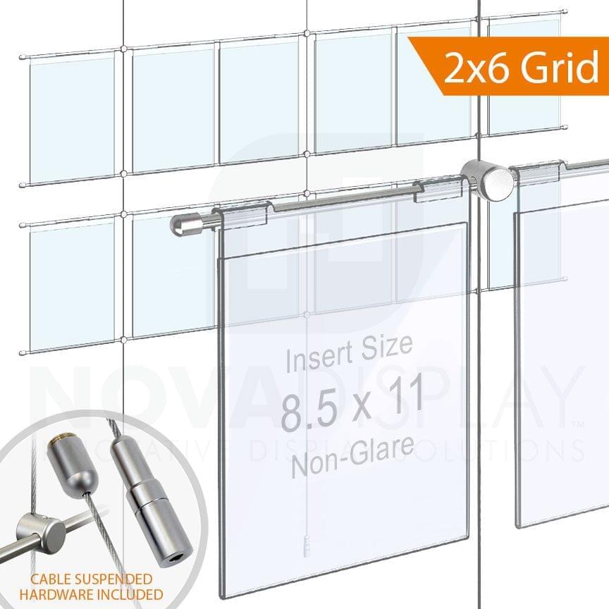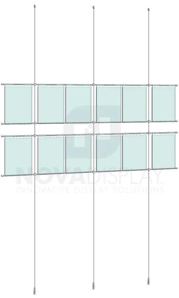 Cable Suspended Hook-on Acrylic Poster Display – Non-Glare / 2 x 6 Grid Configuration