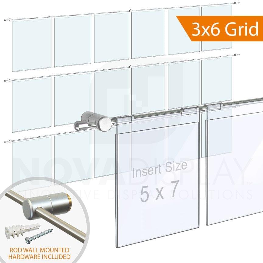 Rod Wall Mounted Hook-on Acrylic Photo Display – Clear / 3 x 6 Grid Configuration