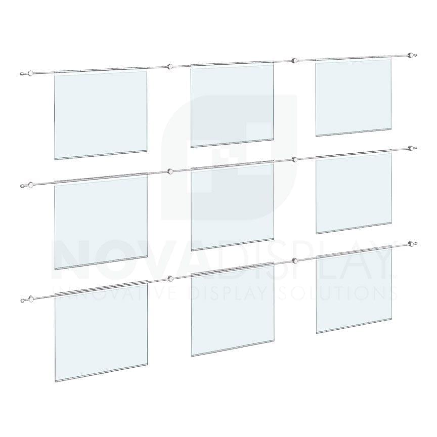Rod Wall Mounted Hook-on Acrylic Poster Display – Clear / 3 x 3 Grid Configuration