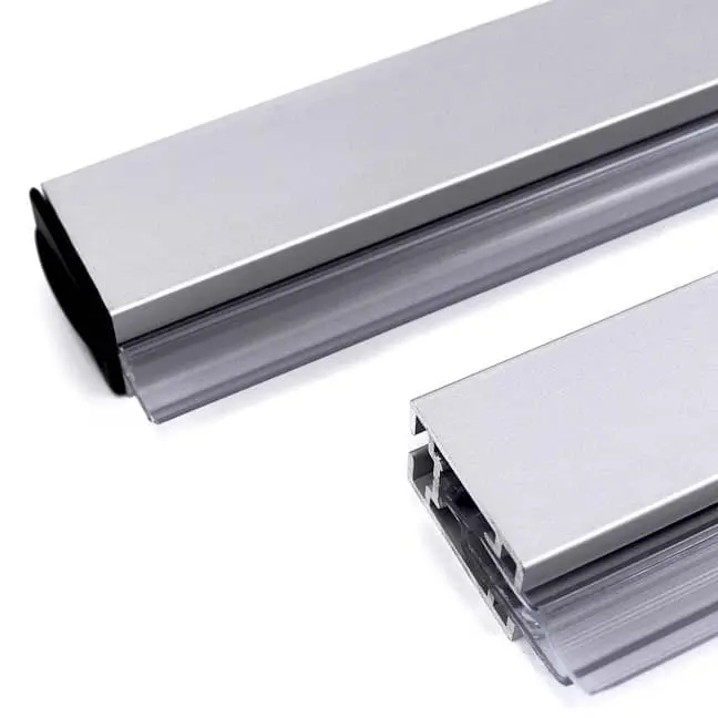 Quick-Snap Aluminum Graphic Gripper for 18″ to 48” wide graphics. Price includes one holder (crossbar) with end caps for both ends – you will need two holders (top and bottom) to hang a graphic. Use with Wall Hangers or Cable Hardware for Ceiling Suspension. Sold separately.