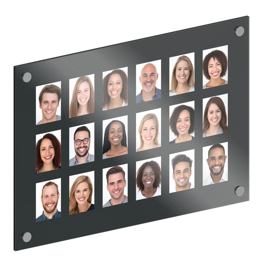 FINISHES: Mounting hardware is supplied in satin clear, satin black, or stainless steel finishes. The acrylic backboard is made of 1/4″ thick acrylic and is available in a few finish options, such as clear, frost matte, white matte, or black matte. The acrylic front cover is made of quality 1/8″ thick non-glare (non-reflective) acrylic.