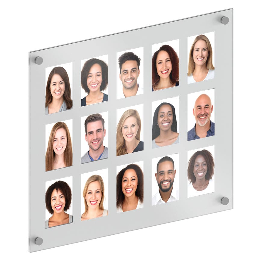 Experience the seamless elegance of our Collage Photo Wall Display—a clean, frameless solution that unites multiple photo inserts beneath a single, expansive front acrylic panel, perfectly aligned with a matching back panel and secured to the wall using premium standoff hardware. This frameless design features high-quality acrylic panels for seamless multi-photo arrangements: