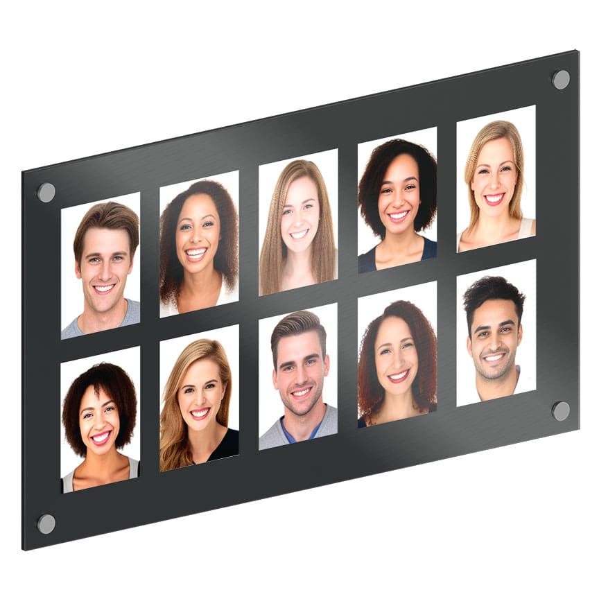 FINISHES: Mounting hardware is supplied in satin clear, satin black, or stainless steel finishes. The acrylic backboard is made of 1/4″ thick acrylic and is available in a few finish options, such as clear, frost matte, white matte, or black matte. The acrylic front cover is made of quality 1/8″ thick non-glare (non-reflective) acrylic.