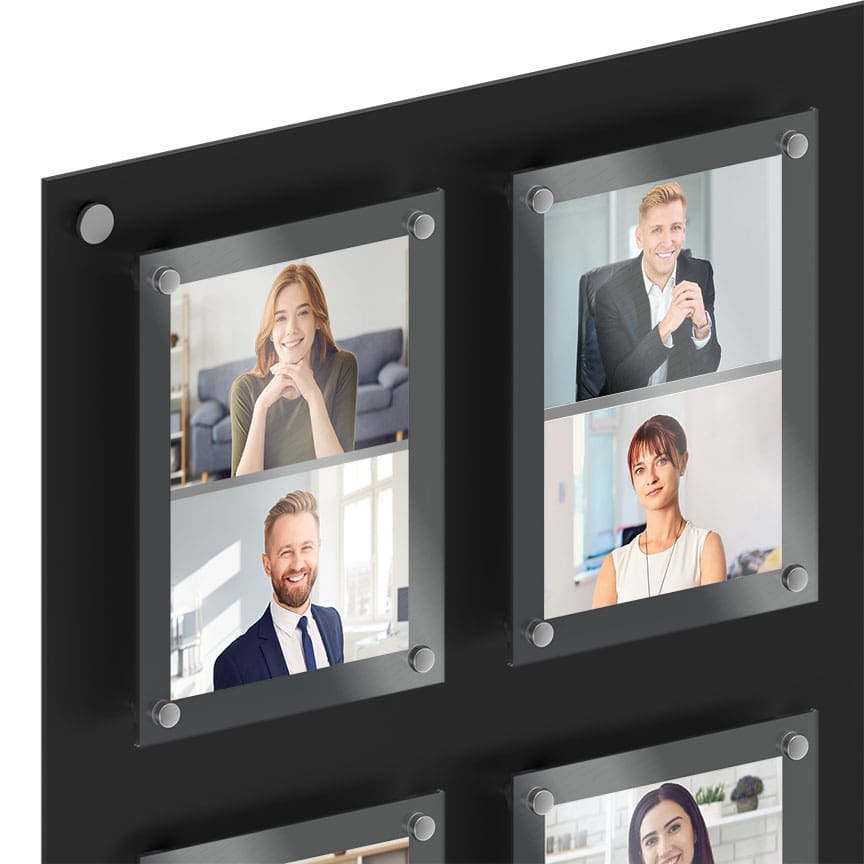 Projection Type: Frame supports are available in a few options — ½” or 1” standoffs for outward projection, or screw caps only for a flush mount (*WM05-13 / WM05 / P24/S).