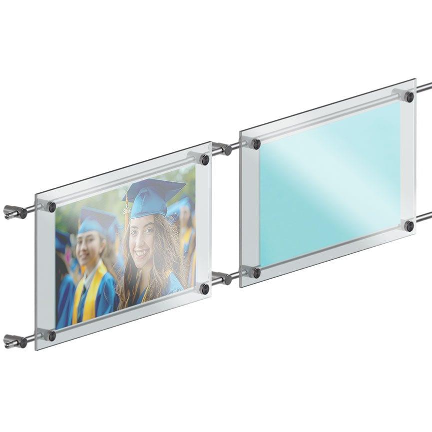 FINISHES: Mounting Hardware is supplied in a satin chrome finish. Acrylic frames are made of high-quality 1/8″ thick clear or non-glare acrylic.