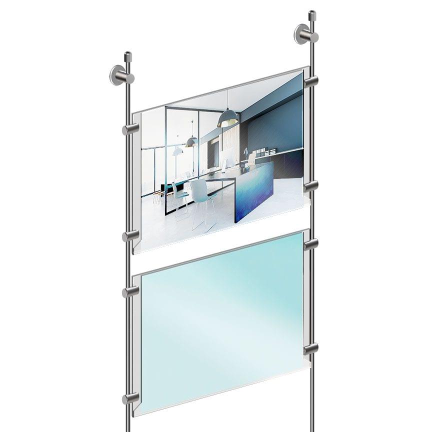 FINISHES: Mounting Hardware is supplied in a satin chrome finish. Acrylic holders are made of high-quality 1/8″ thick clear or non-glare acrylic.
