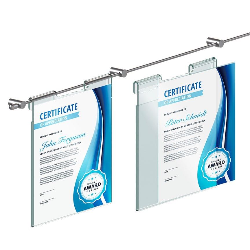 FINISHES: Mounting Hardware is supplied in a satin chrome finish. Acrylic holders are made of high-quality 1/8″ thick clear or non-glare acrylic.