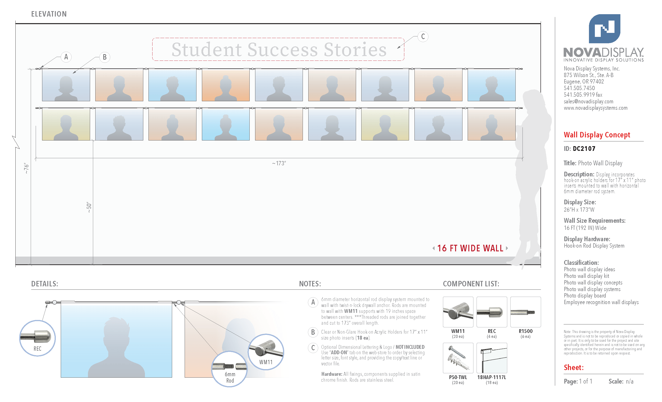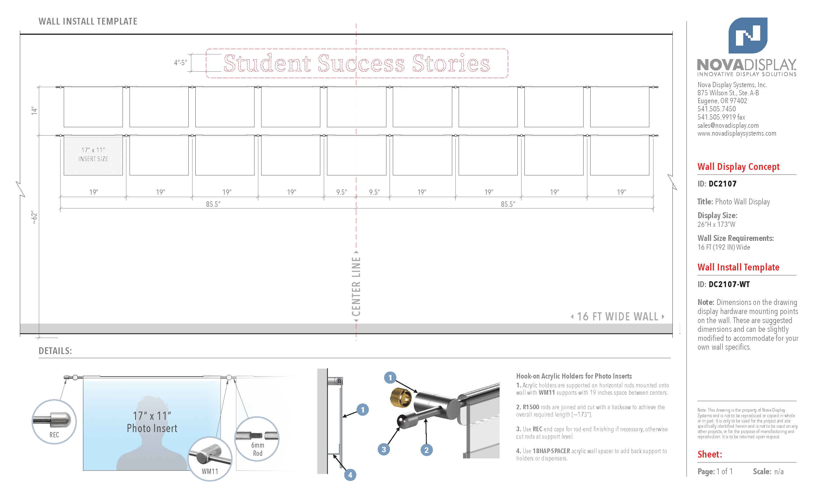 DC2107 Photo Wall Display with Hook-on Acrylic Holders for 17×11 Inserts (16FT WALL)