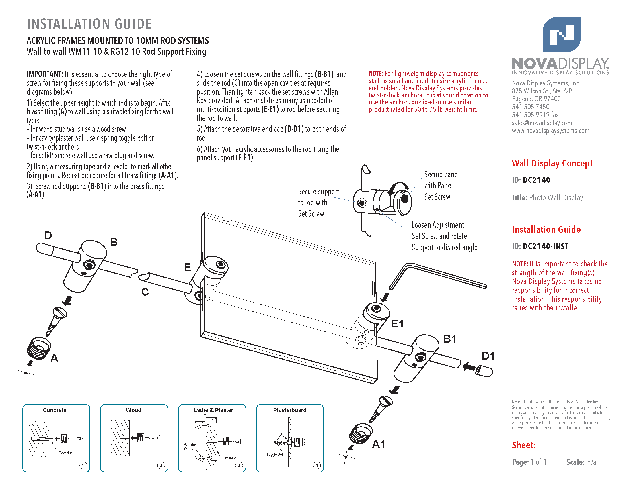 Insert Size: 10″W x 8″H - WM11-10 – Rod Wall Fixing (12 ea)