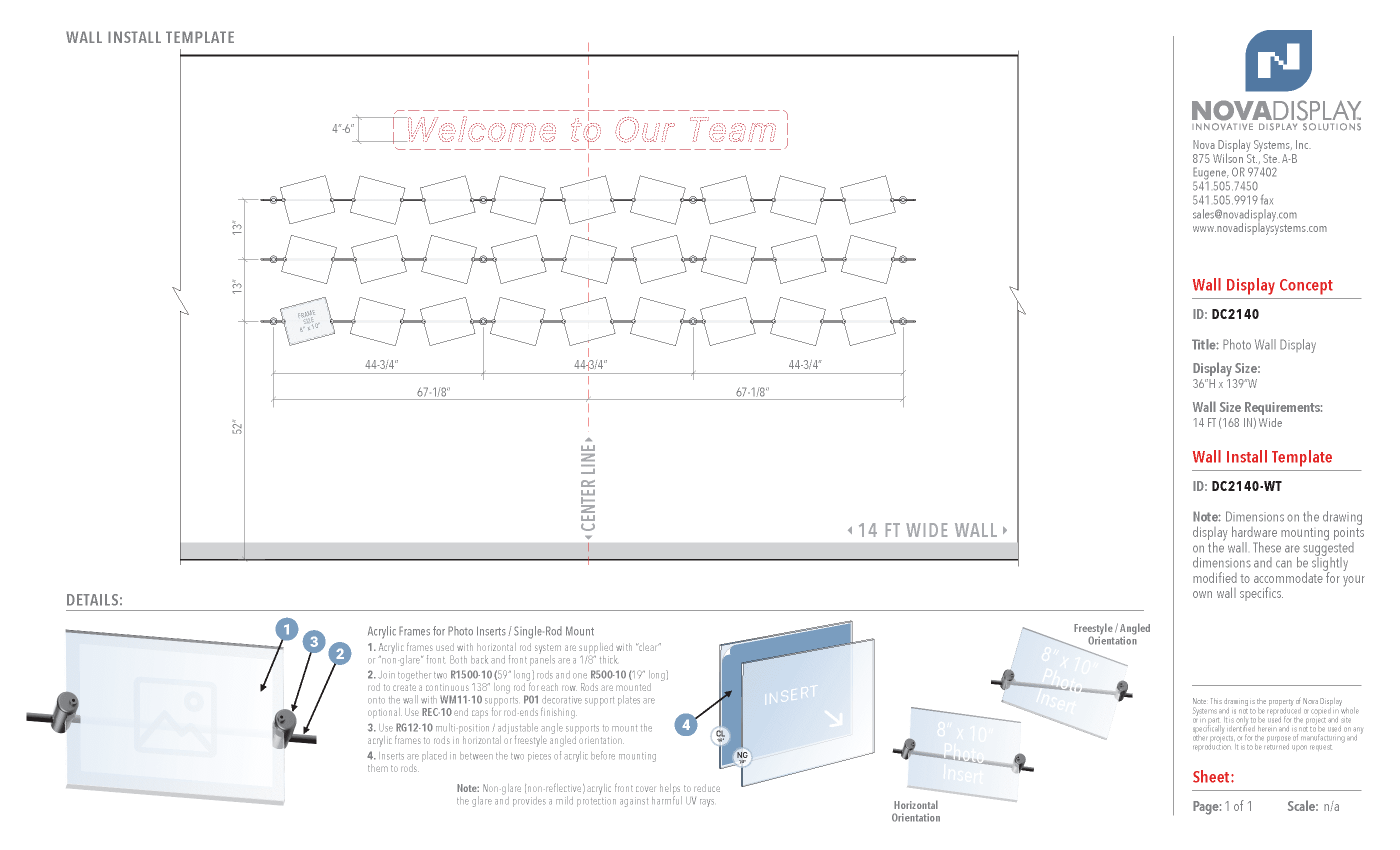 DC2140 Photo Wall Display with Acrylic Sandwich Frames for 8×10 Inserts (14FT WALL)
