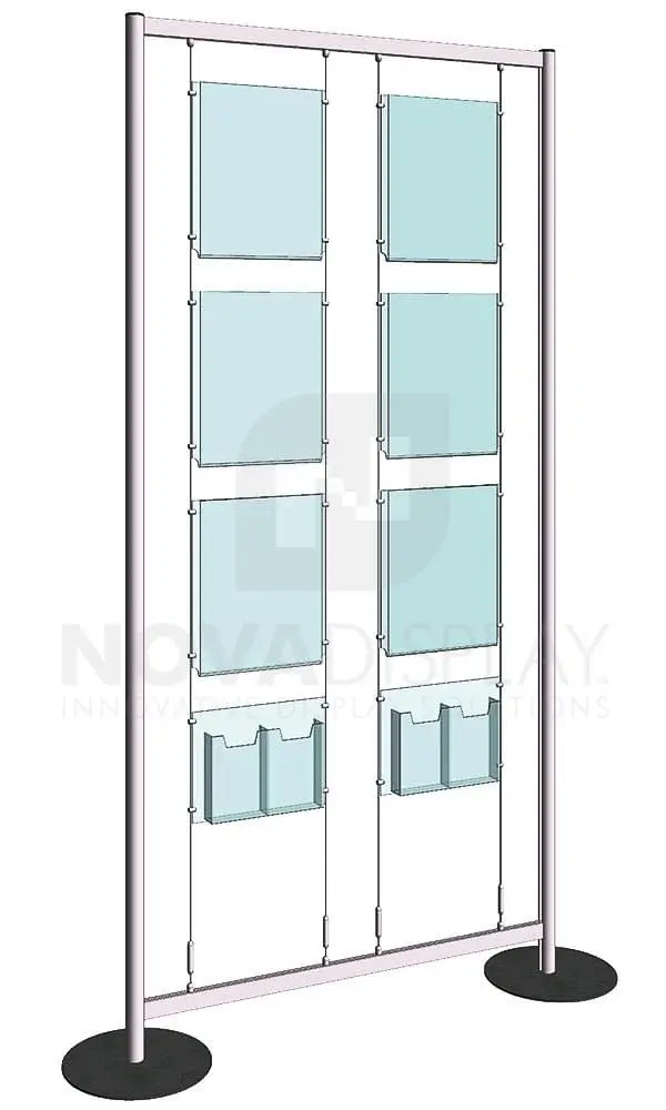 Free-Style free-standing Display Stand Kits / TR Series with custom Info Panel, six acrylic poster holders portrait 8.5″H x 11″H, and two acrylic literature dispensers in Tri-Fold brochure format available in single or double-sided configuration.