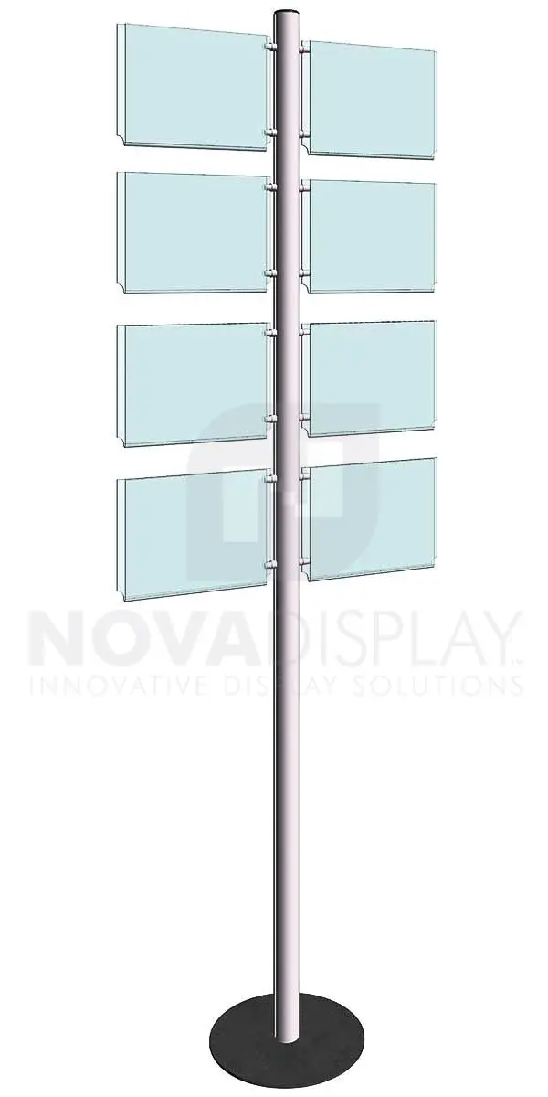 Info-Post Display Stand / TR Series with eight acrylic 11″W x 8.5″H poster holders in landscape format.