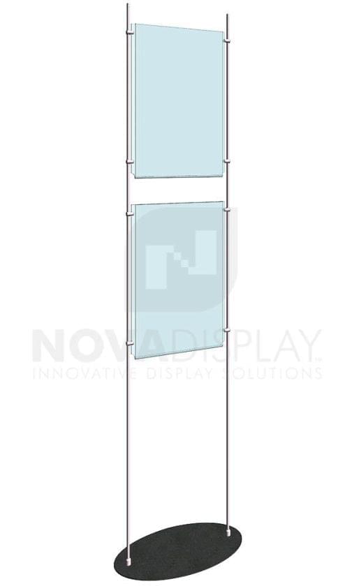 Totem Display Stand / RS Series comes with rods, support fittings, oval base and two 14″x22″ poster holders / portrait format.